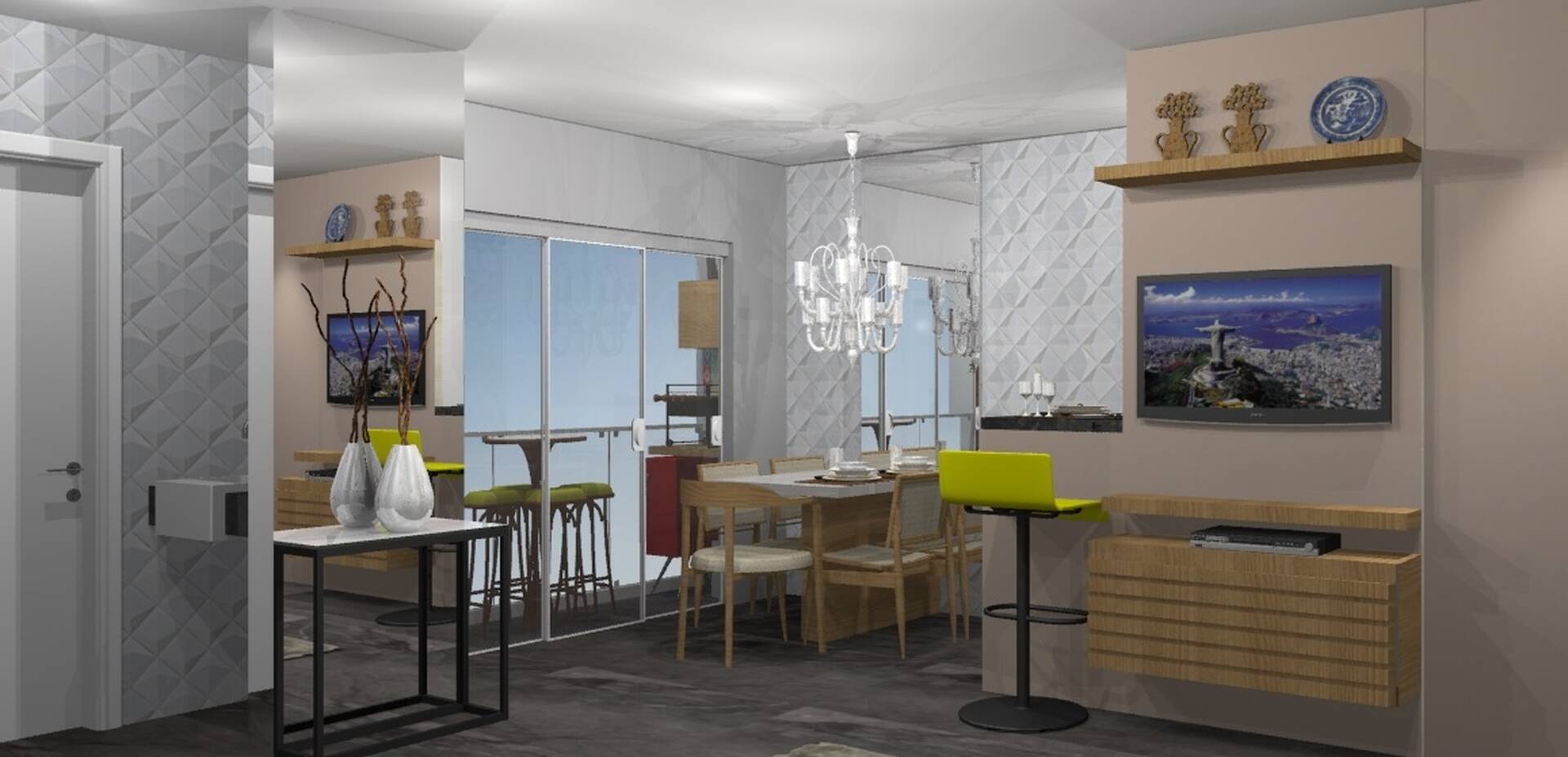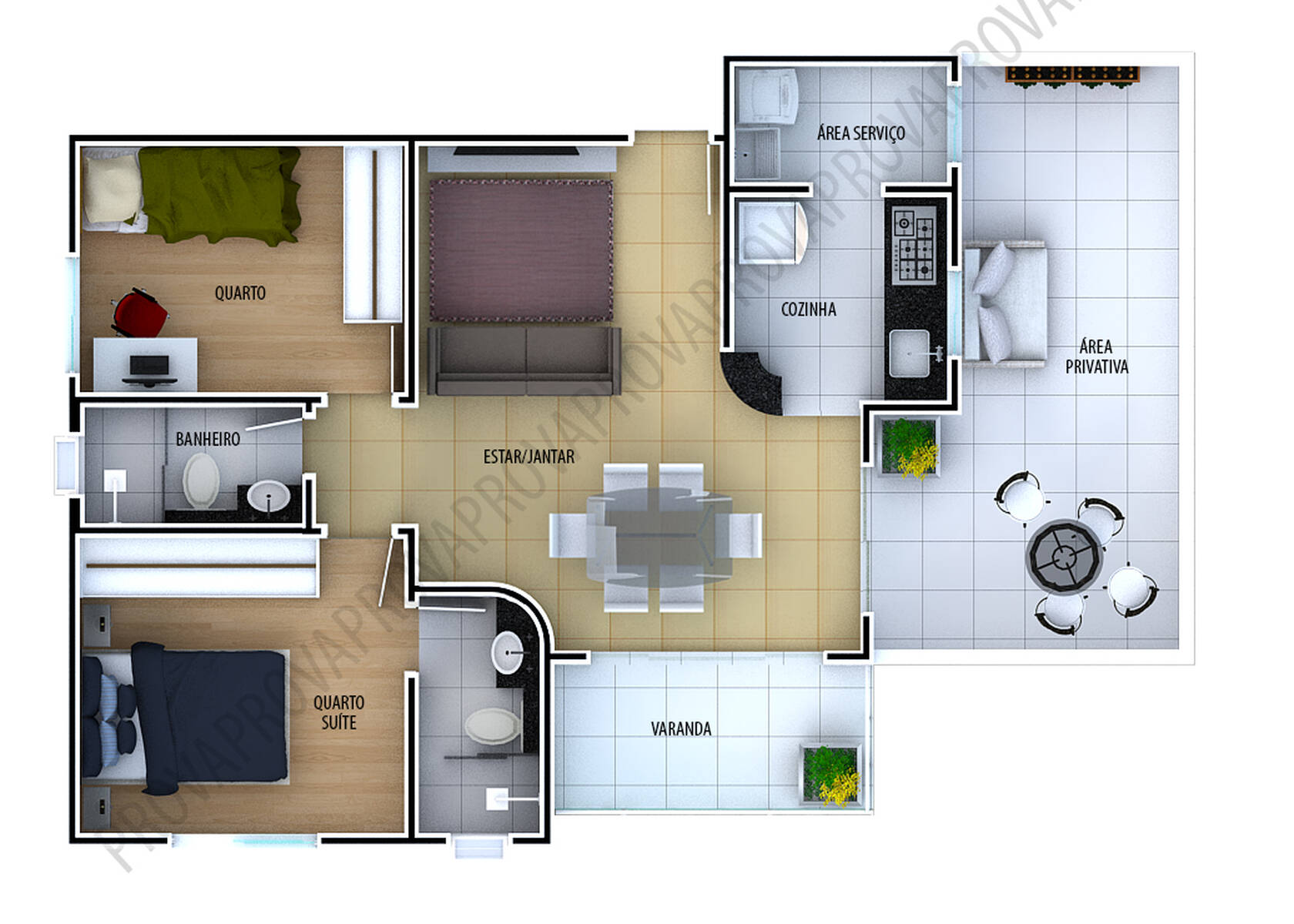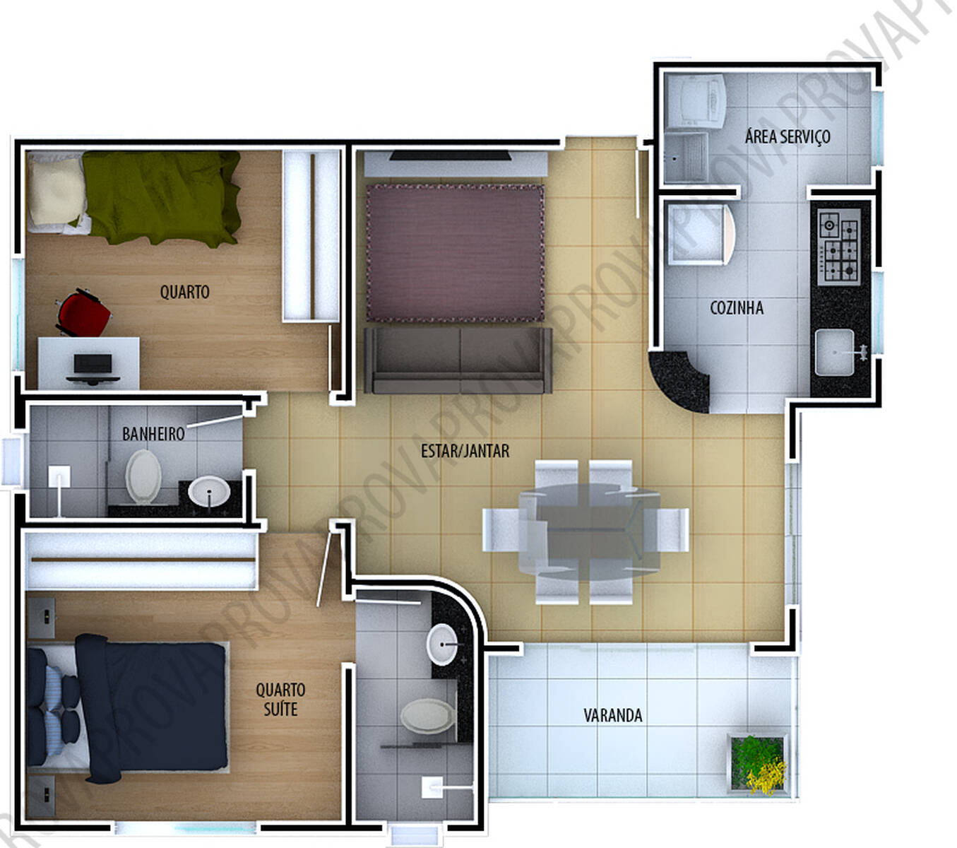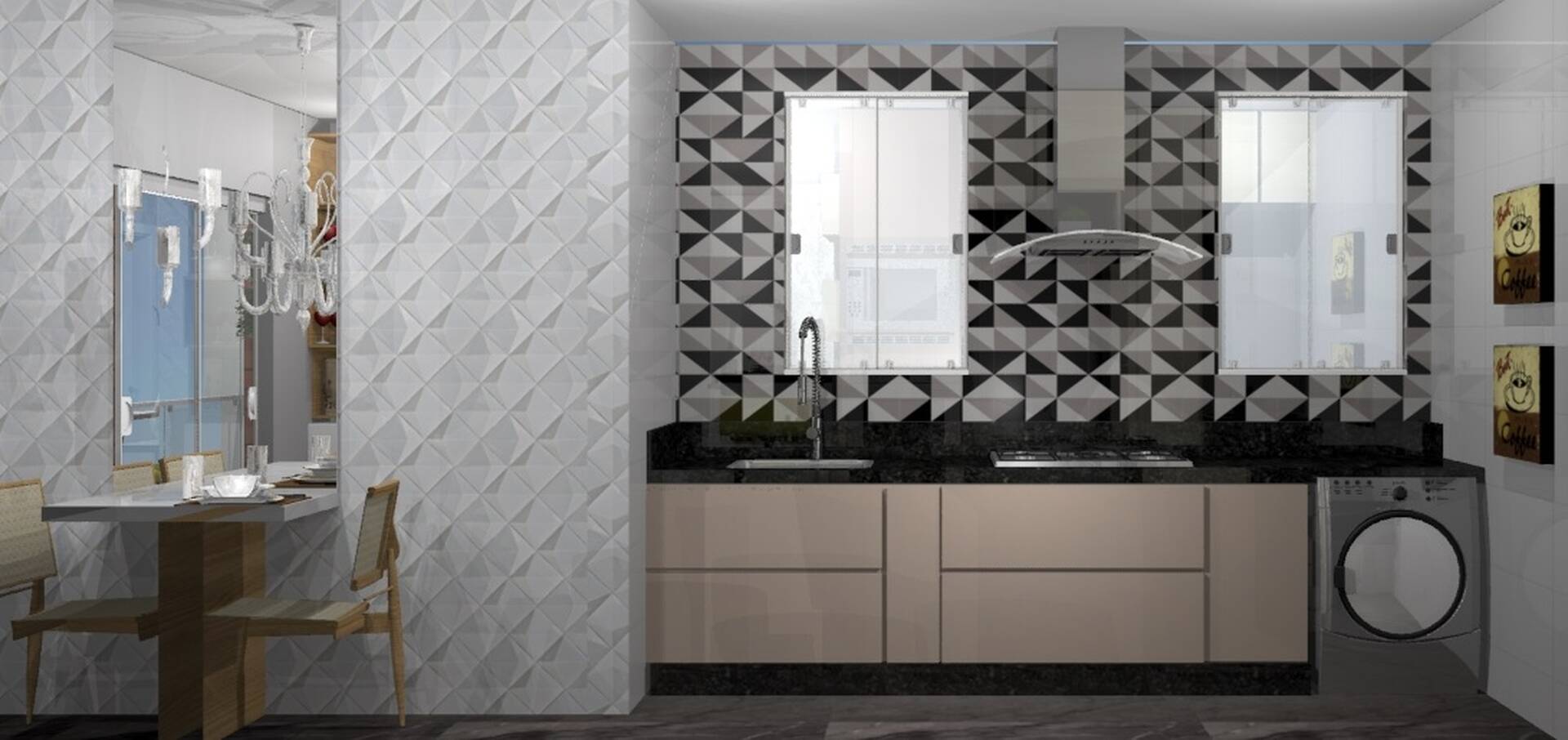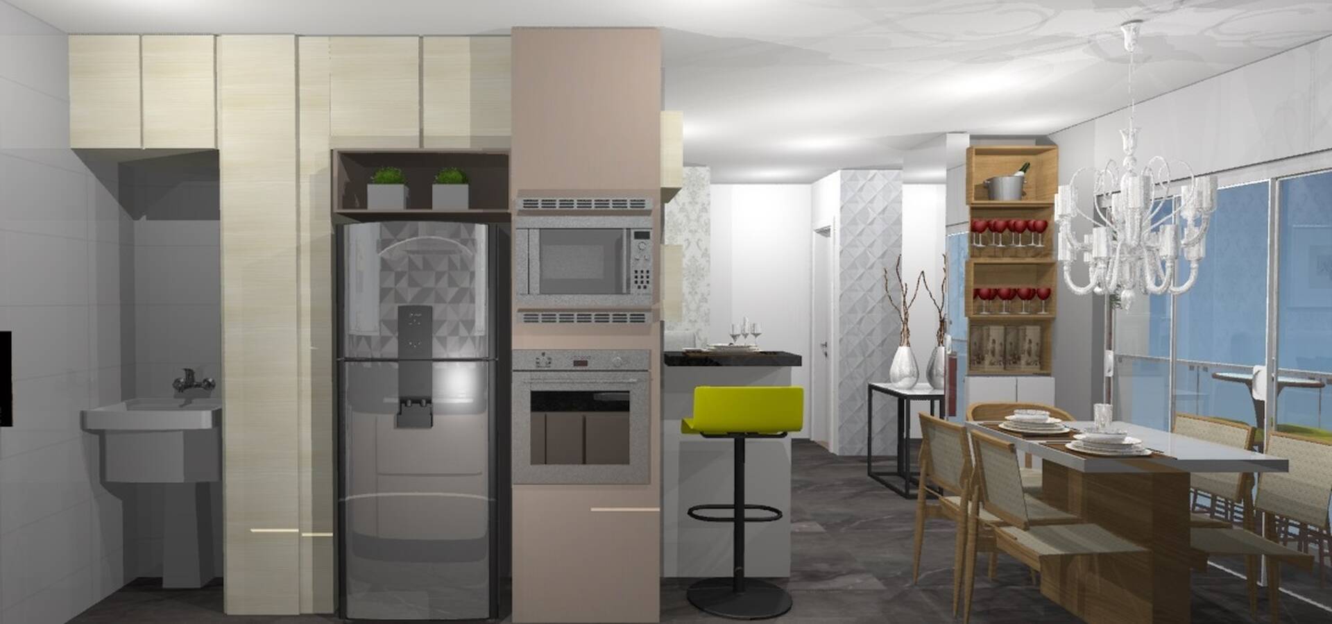 Todas as unidades possuem sala de estar e jantar com varanda, cozinha